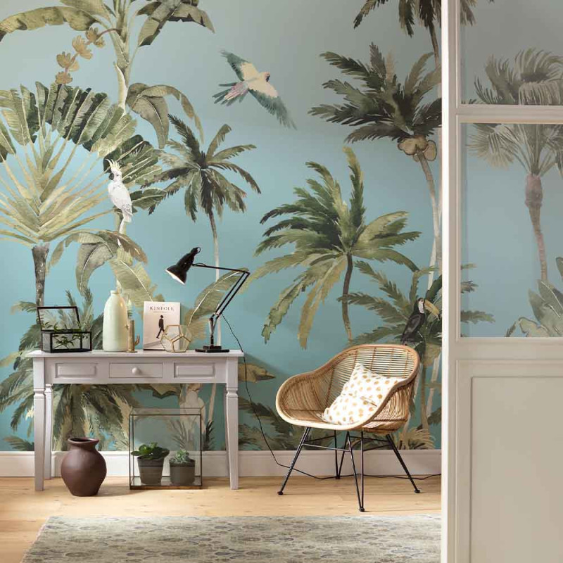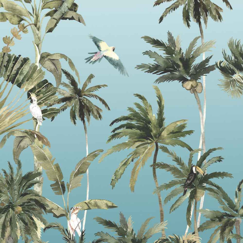 Papier peint panoramique intissé forêt de palmier bleu L300 x H250 cm
