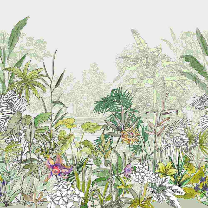 Papier peint panoramique intissé tropical vert L250 x H250 cm