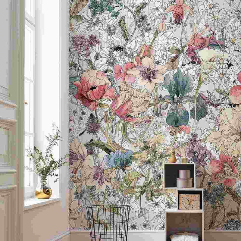 Apportez une touche de magie et de couleur à votre intérieur avec le décor panoramique intissé floral magique...