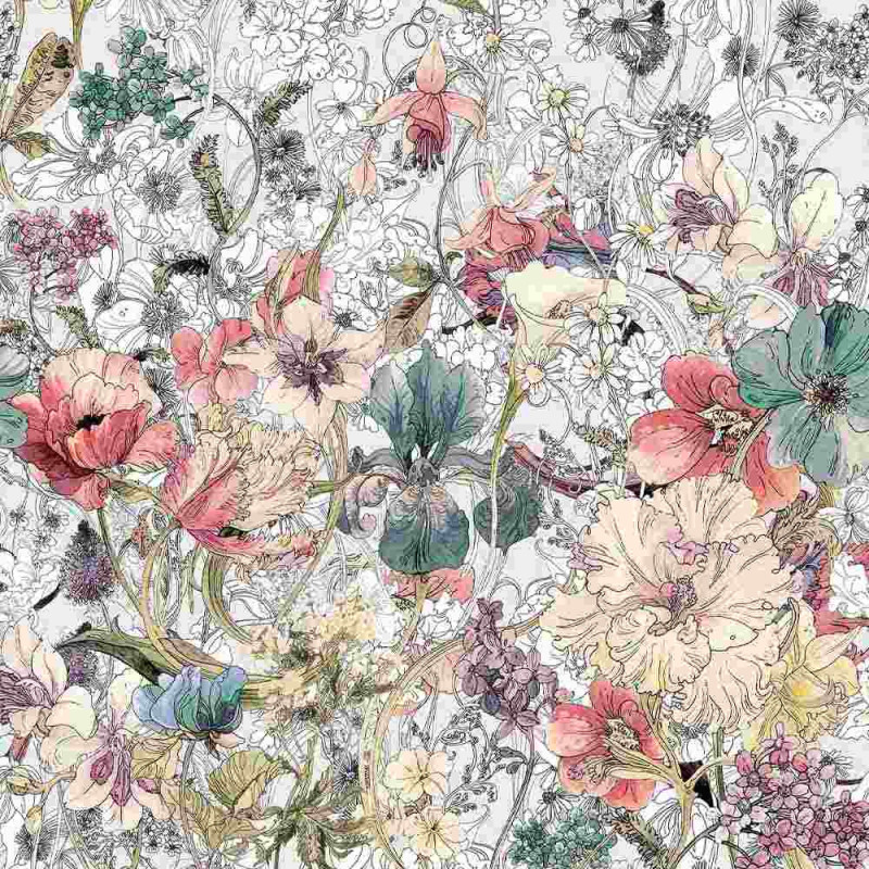 Papier peint panoramique intissé floral magique multicolore L200 x H250 cm