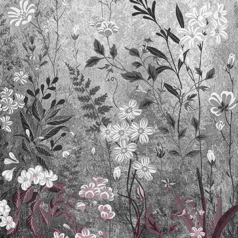 Papier peint panoramique intissé floral gris L200 x H250 cm