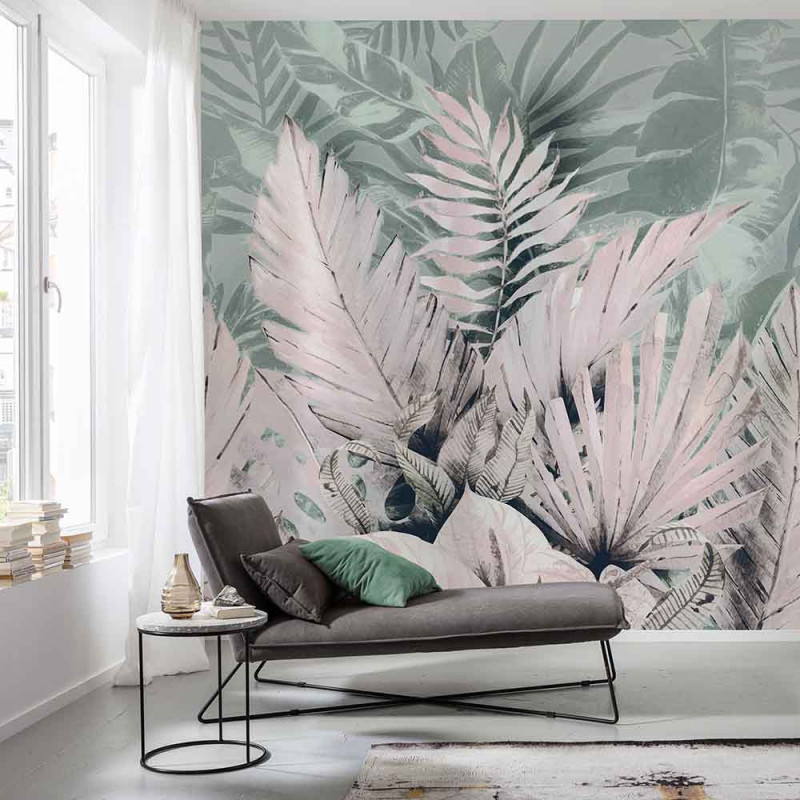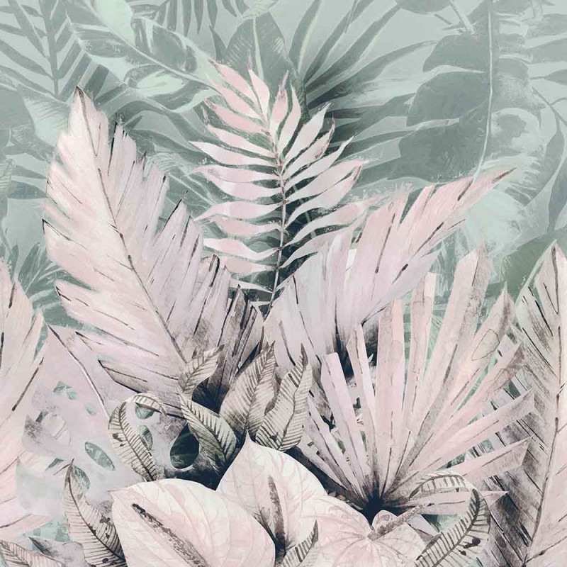 Papier peint panoramique intissé palme tropicale rose L250 x H250 cm