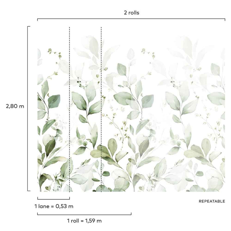 Papier peint panoramique intissé végétal vert L159 x 280H cm