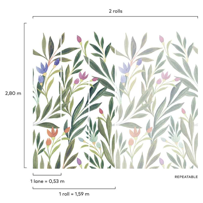 Papier peint panoramique intissé végétal et floral vert L159 x 280H cm