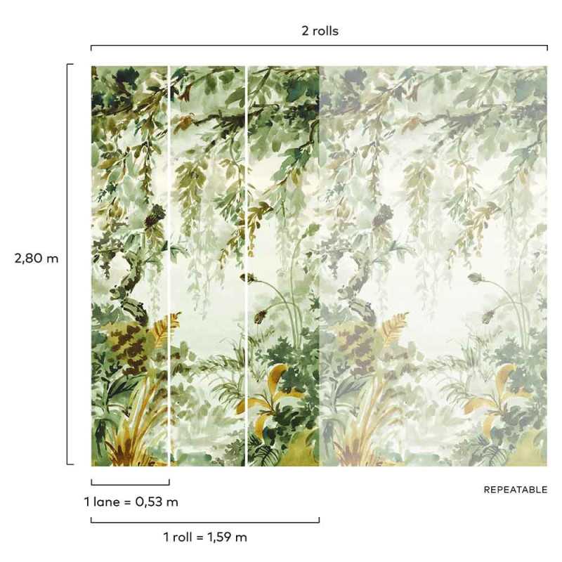 Papier peint panoramique intissé jungle vert L159 x 280H cm