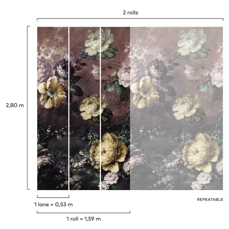 Papier peint panoramique intissé floral sombre L159 x 280H cm