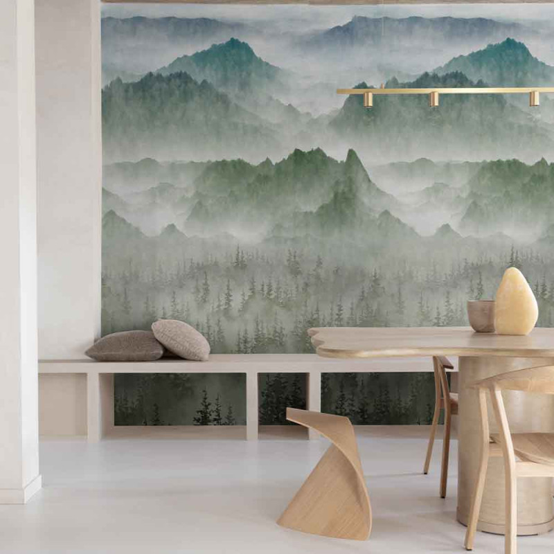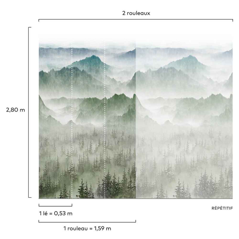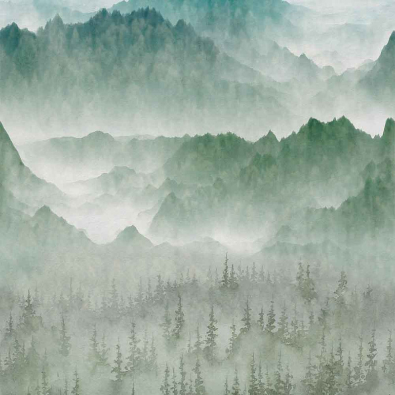 Papier peint panoramique intissé montagne vert L159 x 280H cm