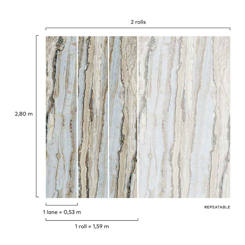 Papier peint panoramique intissé marbre bleu L159 x 280H cm