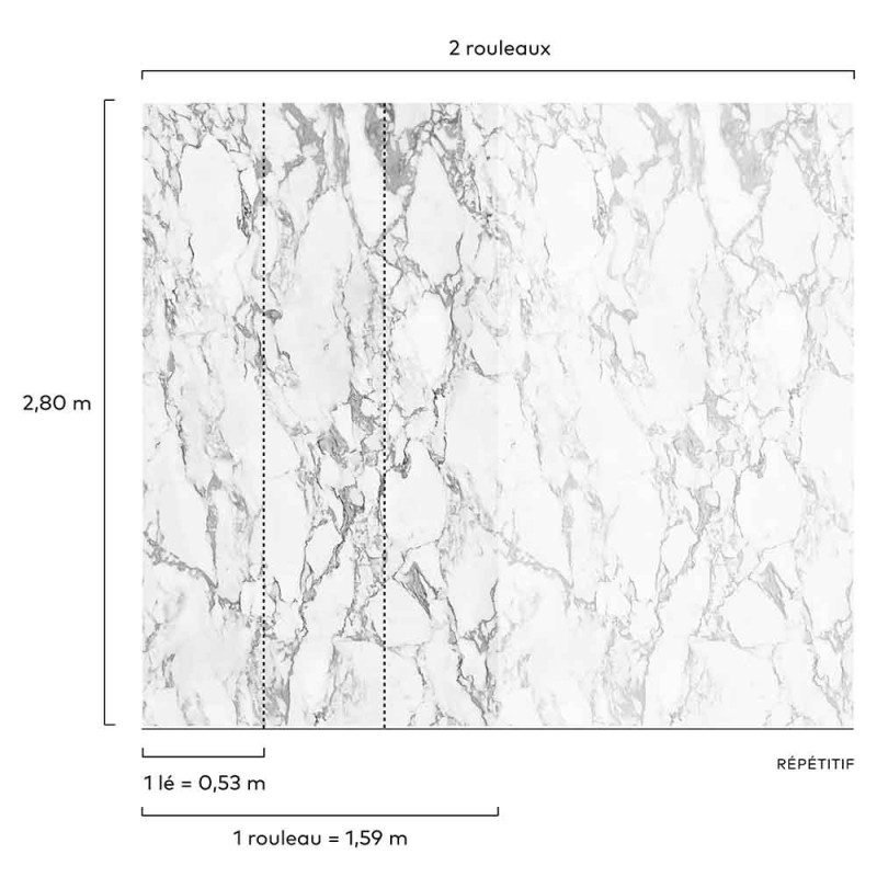 Papier peint panoramique intissé marbre blanc L159 x 280H cm