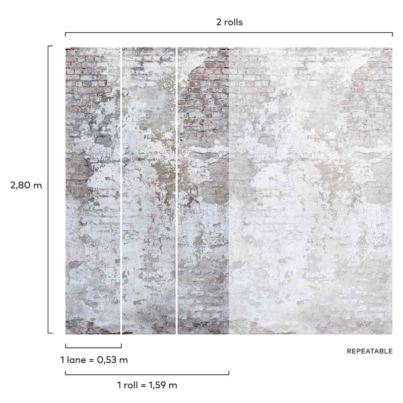 Papier peint panoramique intissé brique blanc L159 x 280H cm