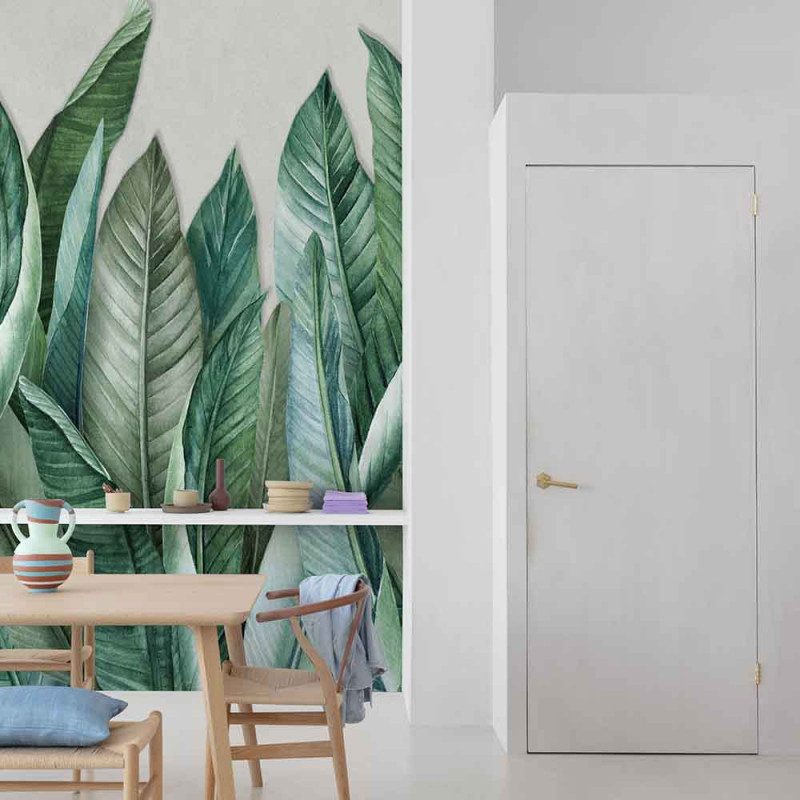 Papier peint panoramique intissé grande palme vert L159 x 280H cm