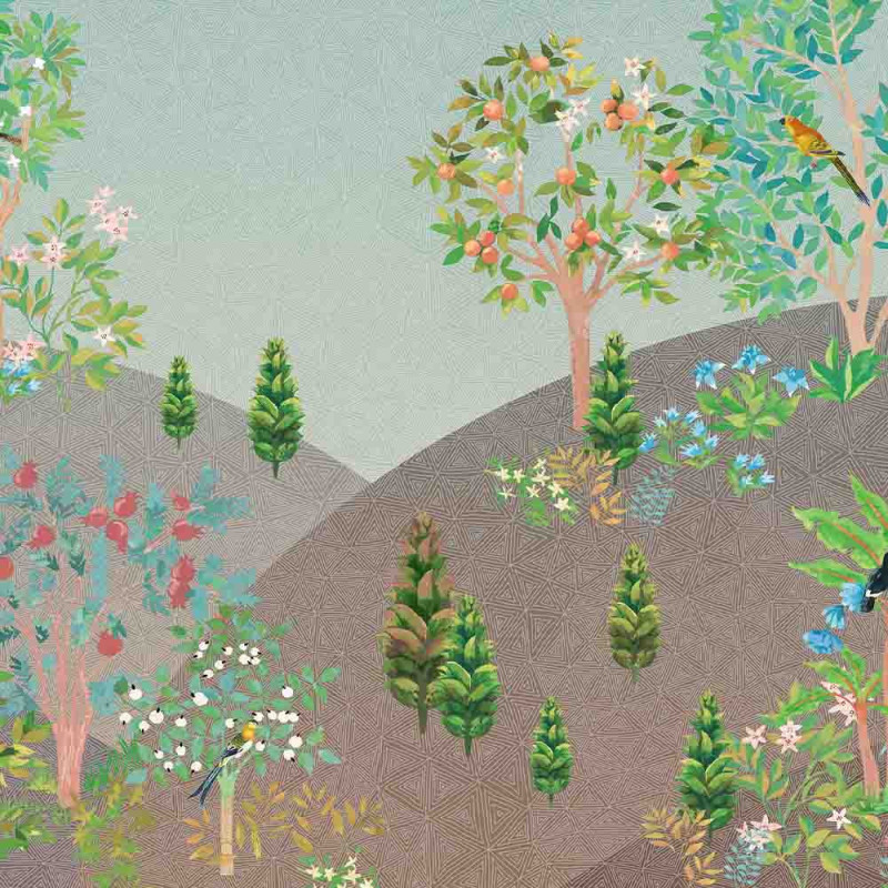 Transformez votre pièce en un véritable havre de paix avec le papier peint panoramique Jardin Perse vert de 300 x 250 cm. Ce décor immersif, inspiré de l’univers persan, dévoile une forêt luxuriante habitée par des oiseaux colorés et bordée de collines douces et fertiles. Il évoque la richesse de la nature et crée une atmosphère apaisante et chaleureuse, idéale pour une décoration intérieure qui invite à l’évasion et à la sérénité.