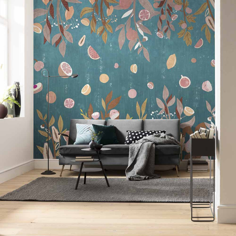 Papier peint panoramique intissé rêve de fruits bleu L350 x H250 cm