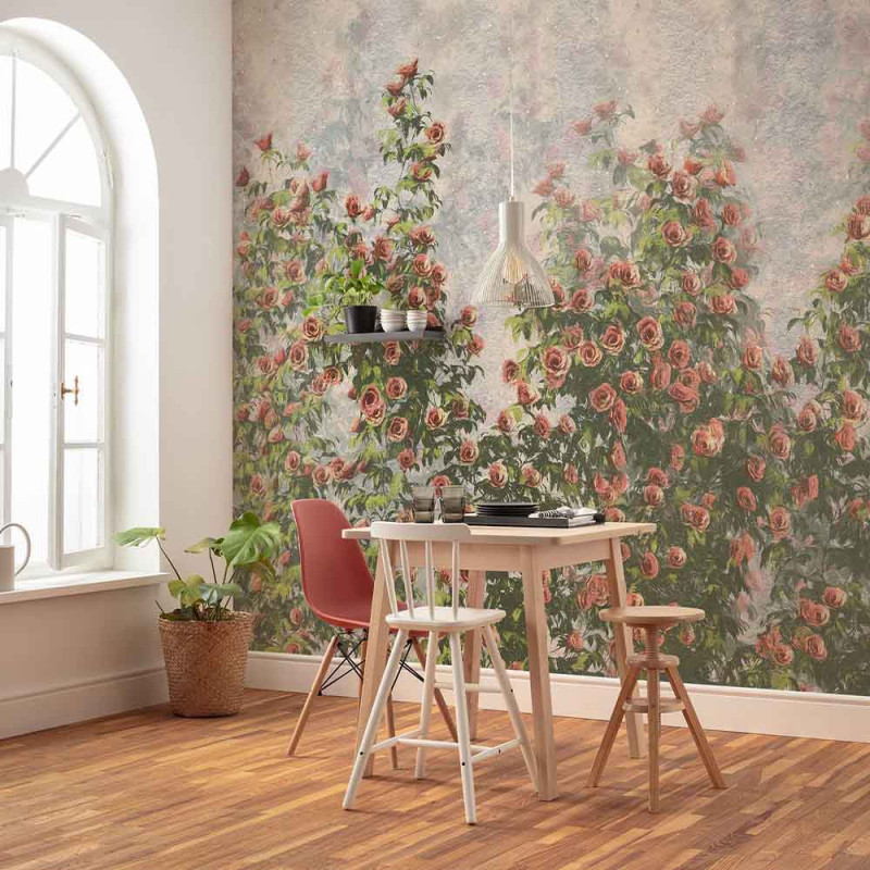 Papier peint panoramique intissé buisson de fleur vert L300 x H250 cm