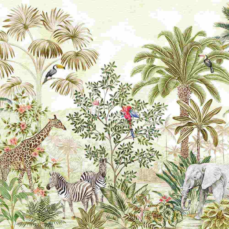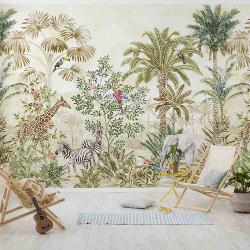 Papier peint panoramique intissé jungle vert L300 x H250 cm