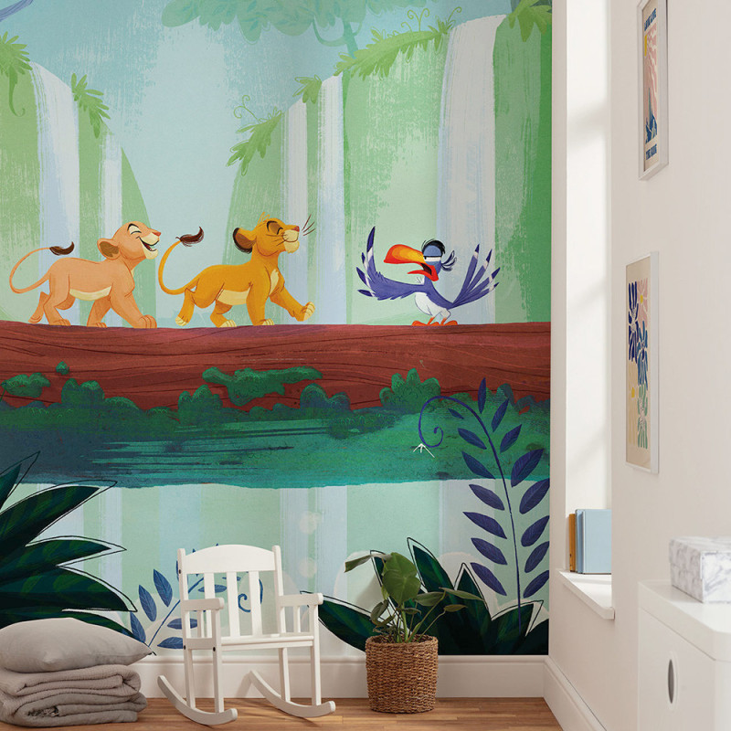 Transformez la chambre de votre enfant en un univers magique avec ce papier peint panoramique Le Roi Lion bleu, format 200 x 250 cm. Zazu, le fidèle conseiller royal, s’amuse à taquiner les espiègles Simba et Nala, qui ne manquent jamais une occasion de s’échapper pour l’aventure. Ce motif Disney plein de vie et de fraîcheur invite les petits fans à plonger dans leur conte préféré tout en personnalisant leur espace avec douceur et fantaisie. Le papier peint préféré de tous les enfants !