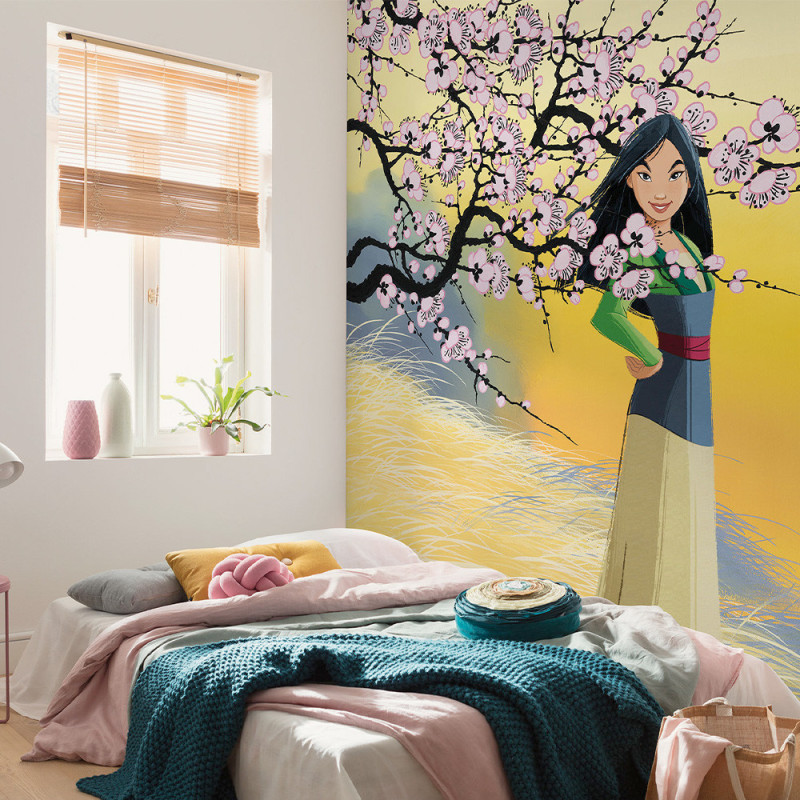 Apportez une touche lumineuse et pleine de vie à votre intérieur avec ce papier peint panoramique Mulan, mesurant 200 cm de large sur 250 cm de haut. Grâce à son association éclatante de jaune soleil et de fleurs de cerisier roses, ce décor mural Disney offre une atmosphère fraîche et printanière qui illumine même les espaces les plus ternes. Représentant Mulan dans toute sa splendeur, ce motif vibrant invite à l’évasion et au charme oriental, parfait pour dynamiser une chambre d’enfant ou une pièce à vivre.