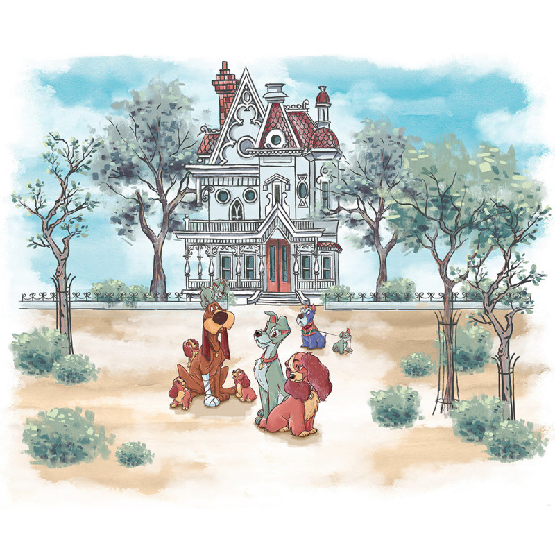 Apportez une touche de tendresse et d’aventure à votre intérieur avec le papier peint panoramique intissé Lady forêt bleu, format L300 x H250 cm. Inspiré de l’univers Disney, ce motif met en scène Lady et ses amis chiens dans un décor paisible mêlant élégance urbaine et nature verdoyante. Entre harmonie familiale et esprit de liberté, cette fresque murale aux nuances de bleu profond et de vert doux crée une ambiance chaleureuse et apaisante, parfaite pour une chambre d’enfant ou un espace de détente.