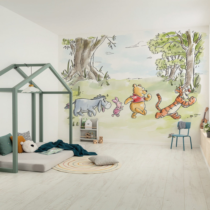 Papier peint panoramique intissé Winnie dans la forêt vert L300 x H250 cm