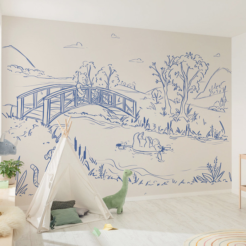 Papier peint panoramique intissé dessin Winnie bleu L350 x H250 cm