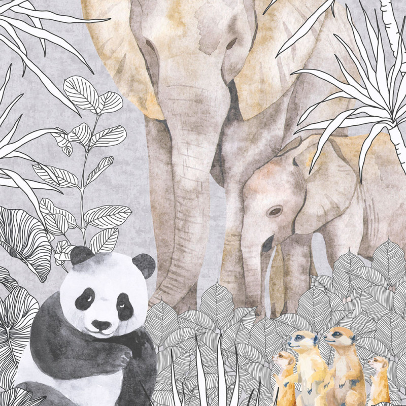 Papier peint panoramique intissé Safari gris AS CREATION