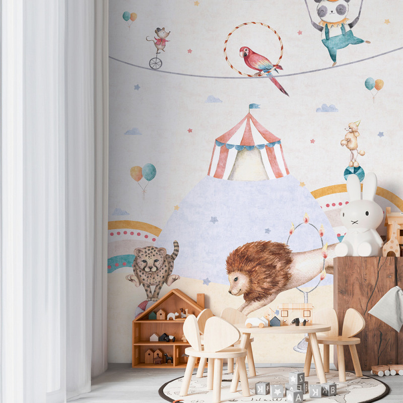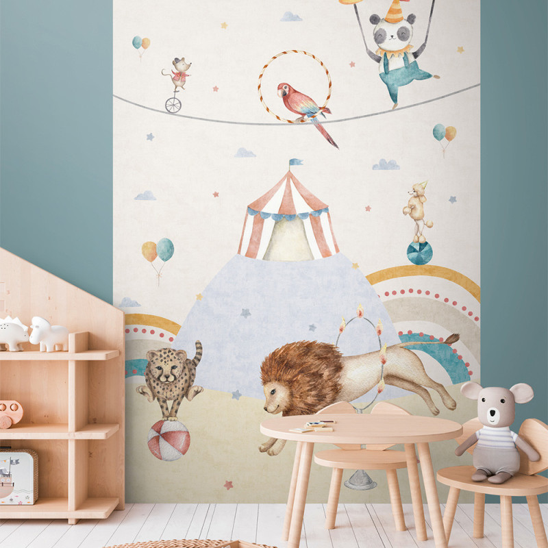 Apportez de la gaieté à votre intérieur avec le papier peint panoramique intissé motif Cirque...