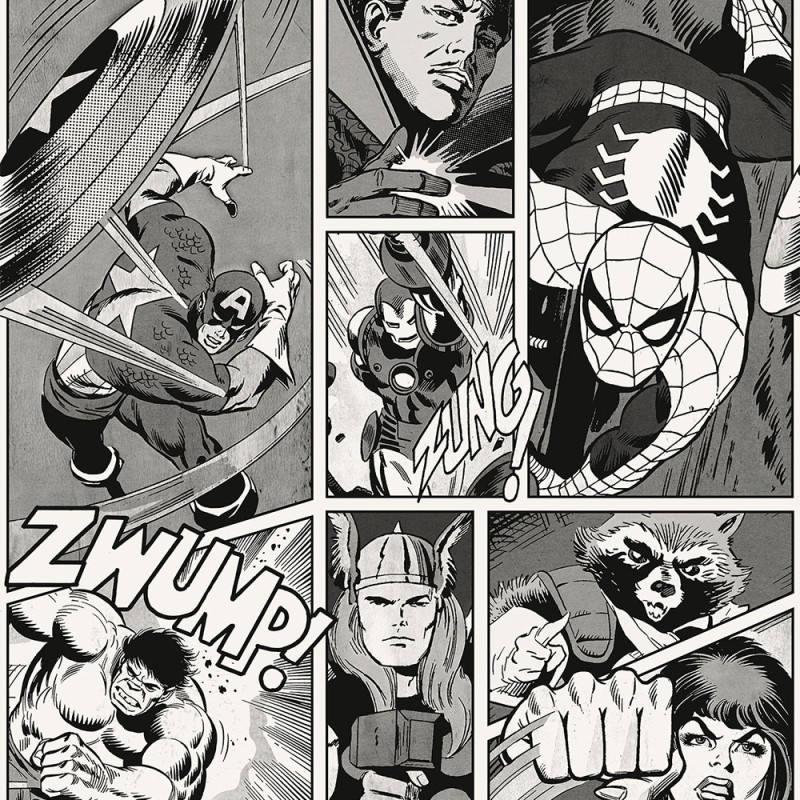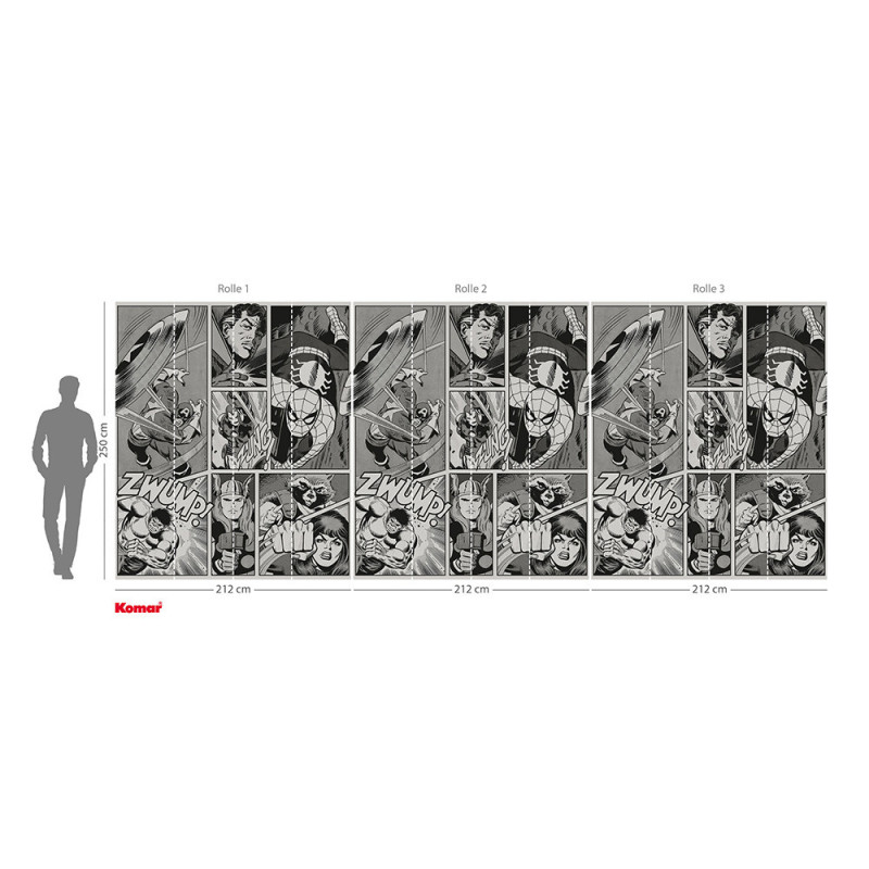 Papier peint panoramique intissé Marvel monochrome noir et blanc KOMAR