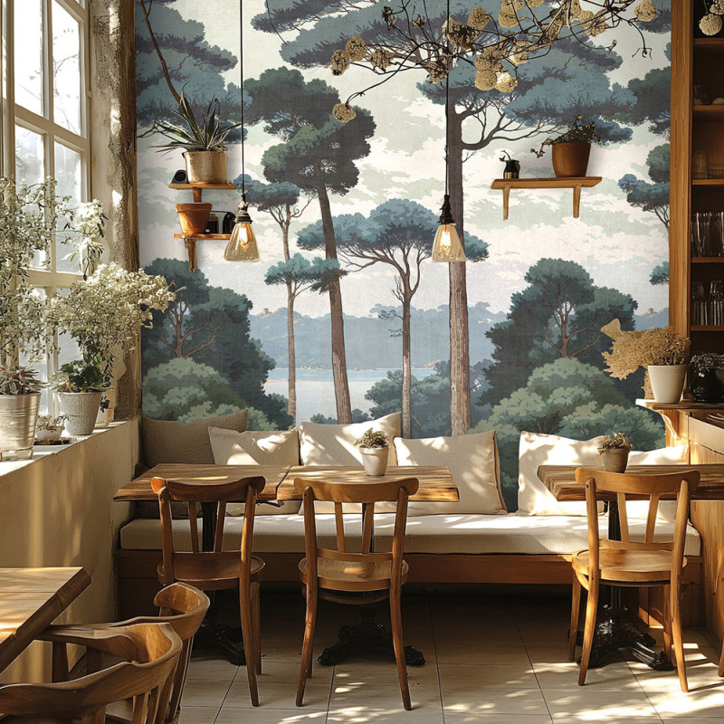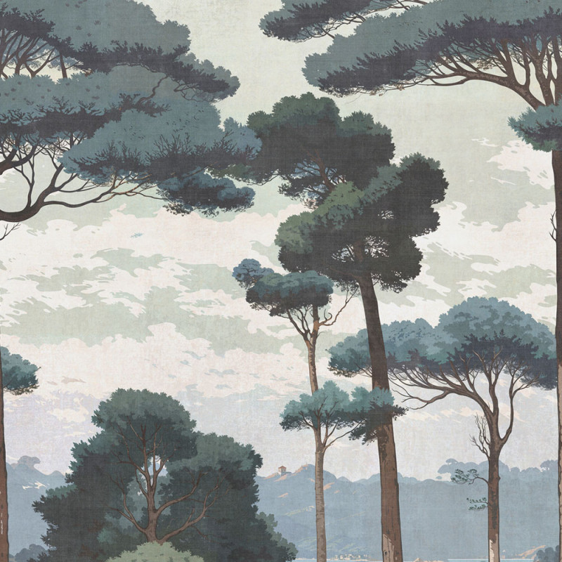 Ce papier peint panoramique dévoile une vue apaisante d’une forêt de pins majestueux, bordant une rivière sinueuse et une rive méridionale. Les silhouettes des pins ajoutent une dimension naturelle et tranquille à l'ensemble, tandis que la rivière serpente avec fluidité, invitant à la détente et à l’évasion. Ce décor mural, inspiré de la nature sauvage, apporte sérénité et beauté intemporelle à votre intérieur.