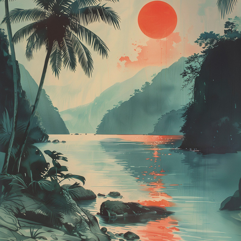 Ce papier peint panoramique enchanteur capture la sérénité d'une plage déserte au coucher du soleil, avec des teintes de rouge oranger, bleu et beige dans un style aquarelle. Les nuances chaudes de rouge oranger rappellent la chaleur du soleil couchant, tandis que le bleu évoque la mer ou le ciel, créant un contraste harmonieux. Le beige, inspiré du sable, apporte calme et naturel à la scène. L'effet aquarelle et ses transitions douces créent une ambiance apaisante et onirique, transformant votre mur en une fenêtre ouverte sur la beauté naturelle.