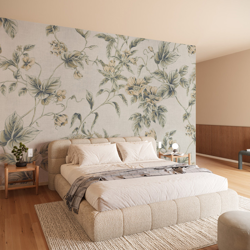 Le papier peint panoramique intissé Peachy Flora Loca de KOMAR (300 x 250 cm) apporte une touche botanique raffinée à votre intérieur. Ses feuilles et fleurs délicatement illustrées à la main, dans des tons verts et beige chaud, offrent une sensation de légèreté et de sérénité. Ce panoramique crée une atmosphère douce et élégante, parfaite pour habiller un mur d’accent ou enrichir un espace contemporain avec style et caractère. À retrouver dans notre sélection de papier peint panoramique floral.