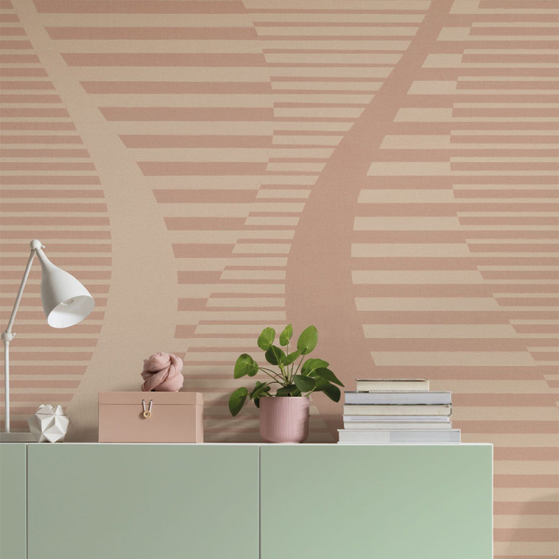 Le papier peint panoramique intissé Pulse Pattern de KOMAR (300 x 250 cm) habille vos murs avec rythme et élégance. Ses bandes larges et fines, alternant harmonieusement, créent un mouvement visuel dynamique qui apporte structure et profondeur à la pièce. Les tons chauds de sable et de rose diffusent une ambiance moderne et apaisante, tandis que la lumière joue avec les nuances pour révéler un subtil contraste ombre-lumière. Ce panoramique est idéal pour ajouter style et légèreté à tout espace contemporain. À retrouver dans notre sélection papier peint panoramique géométrique.