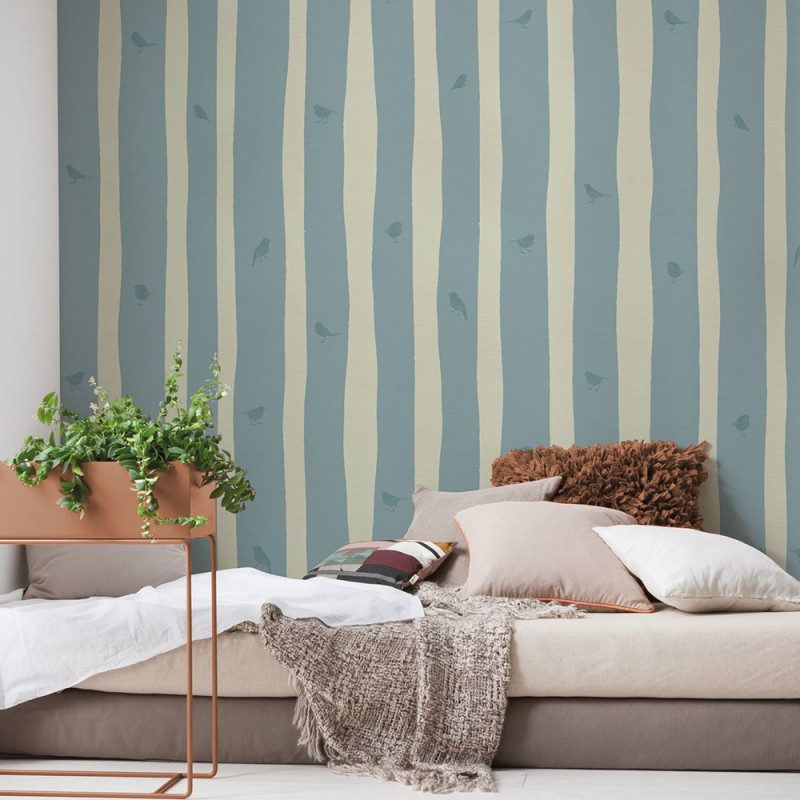 Le papier peint panoramique Summertime de KOMAR (300 x 250 cm) mêle design graphique et douceur subtile. Entre les rayures beige sur fond gris bleuté, de petites silhouettes d’oiseaux apportent une touche créative et délicate, idéale pour créer un mur original et harmonieux. Parfait pour une chambre d’enfant ou de bébé, ce panoramique installe une ambiance calme et réconfortante, tout en offrant un style moderne et discret. À retrouver dans notre sélection papier peint panoramique géométrique.