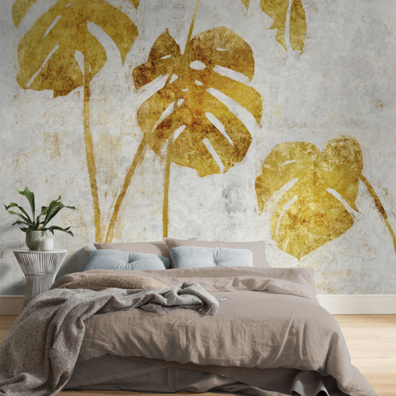 Le papier peint panoramique Golden Monster de KOMAR (300 x 250 cm) transforme vos murs en un décor élégant et contemporain. Les grandes feuilles de Monstera dorées, sur un fond gris-blanc subtilement texturé, apportent modernité et caractère à la pièce. Le contraste entre l’or métallique et les surfaces mates crée profondeur et raffinement, offrant un mur à la fois luxueux et naturel. À retrouver dans notre sélection papier peint panoramique végétal.