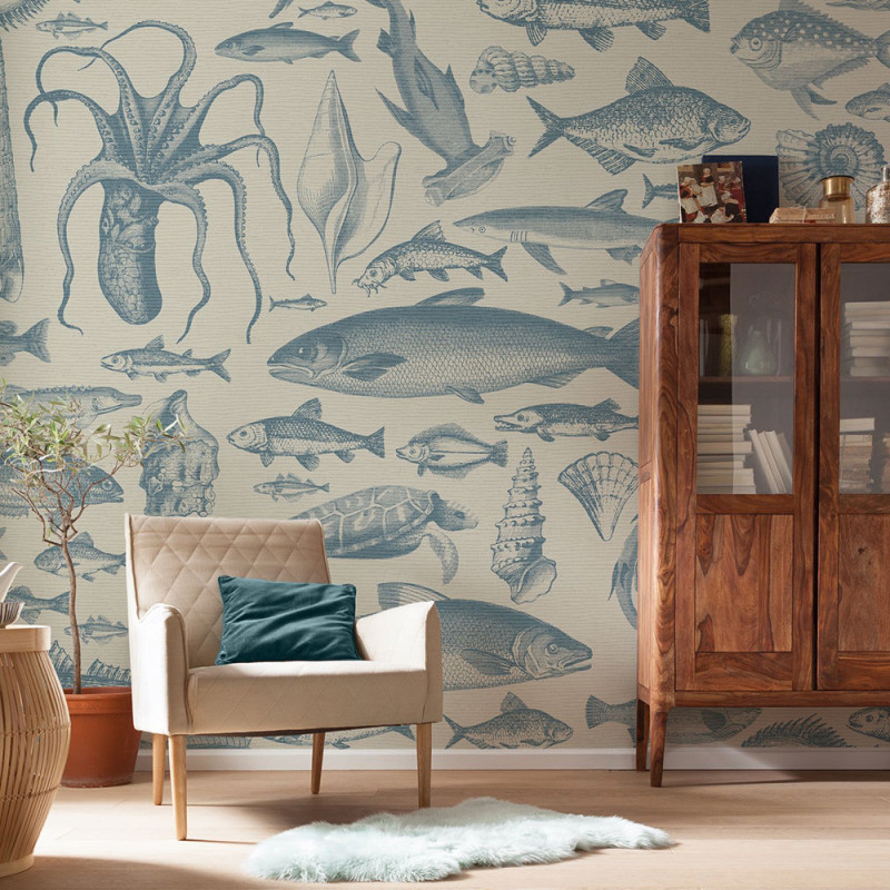 Le papier peint panoramique intissé Sea Study de KOMAR (350 x 250 cm) plonge votre intérieur dans une atmosphère maritime raffinée. Les poissons et coquillages finement dessinés glissent sur le mur avec harmonie et légèreté, tandis que les tons gris-bleu subtilement rétro créent un espace apaisant et élégant. Idéal pour la salle de bain, la chambre d’enfant ou tout intérieur moderne, ce panoramique apporte raffinement et sérénité, tout en restant discret et graphique. À retrouver dans notre collection papier peint panoramique nature et végétal.