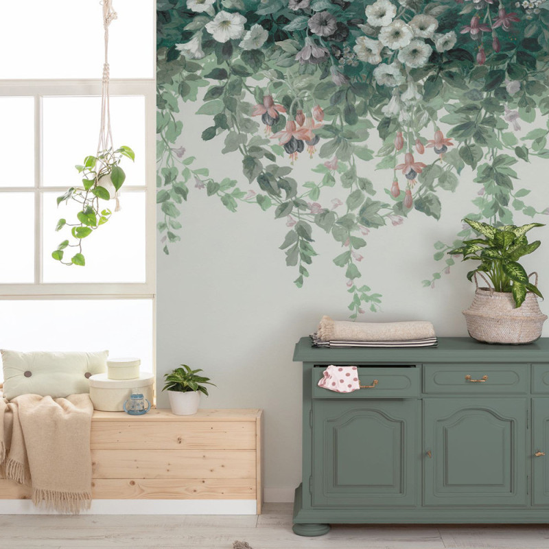 Le papier peint panoramique intissé Guirlandes de KOMAR (350 x 250 cm) apporte à vos murs une atmosphère florale et romantique. Les fleurs délicates – fuchsia, pétunia et tons crème – se mêlent à un feuillage luxuriant vert frais, créant une ambiance légère et apaisante, comme un jardin suspendu à l’intérieur. Son motif élégant et naturel s’adapte à tous les espaces, transformant les pièces en lieux pleins de charme et de vitalité. À retrouver dans notre collection papier peint panoramique nature et végétal.