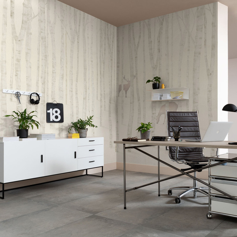 Apportez une touche moderne et naturelle à votre intérieur avec le papier peint panoramique intissé Quebec de KOMAR (350 x 250 cm). Inspiré par les troncs de bouleau, ce design minimaliste joue avec de fines lignes verticales qui évoquent la sobriété et la pureté du bois. La palette douce de crème et grège illumine la pièce tout en restant harmonieuse, idéale pour les chambres d’enfant ou d’ados. Explorez notre collection de papier peint panoramique graphique et enfant pour compléter votre décoration.