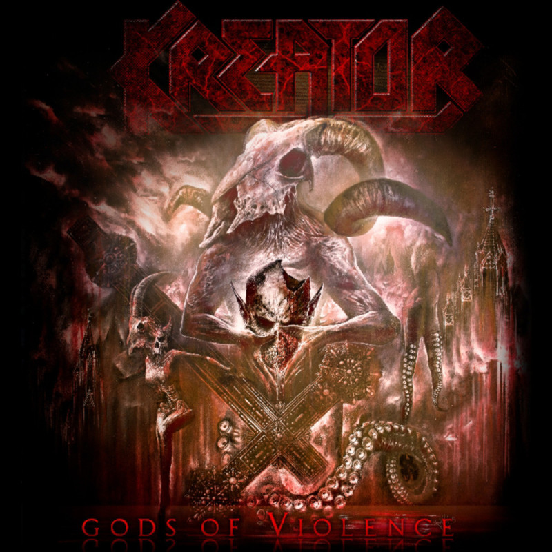 Design : Variante visuelle de l’album Gods of Violence de Kreator, avec une composition marquée et expressive