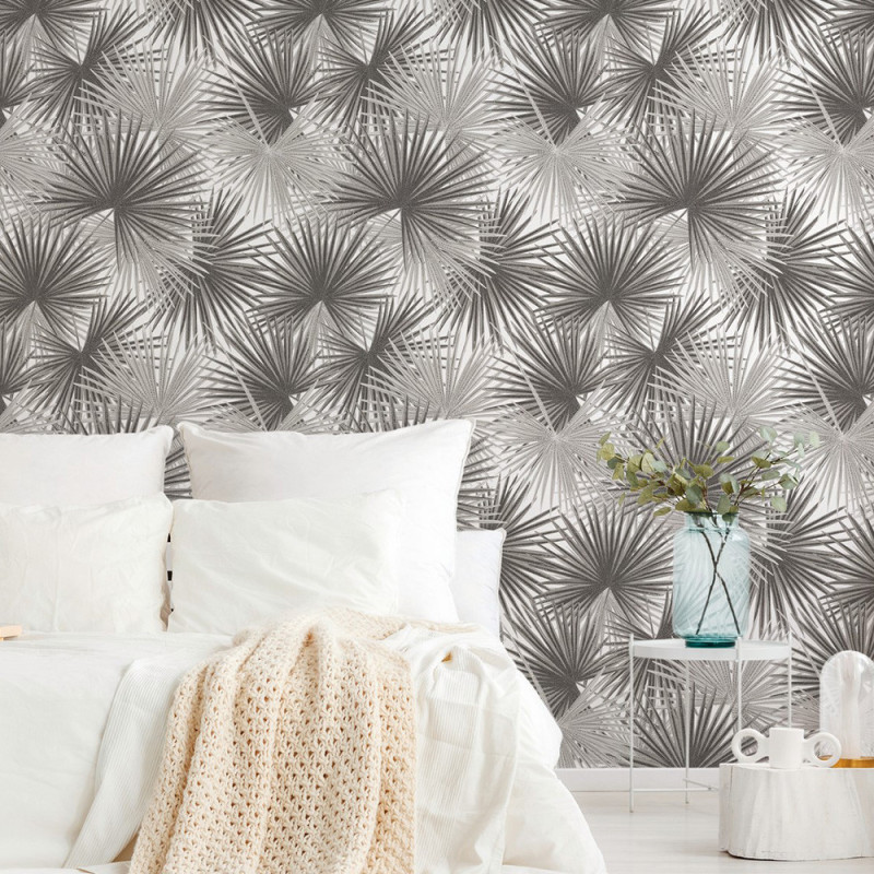 Apportez modernité et légèreté à vos murs avec ce papier peint panoramique pas cher Les Palmiers Gris d’AS Creation. De grandes feuilles de palmier grises s’y déploient avec élégance, créant une impression de mouvement et de profondeur qui attire immédiatement le regard.