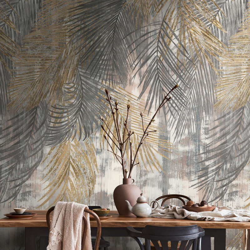 Papier peint panoramique Les Palmes Gris Or 159 x 280 cm AS Creation
