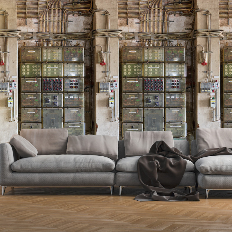 Apportez caractère et style industriel à vos murs avec ce papier peint panoramique pas cher Les Tableaux Electrique d’AS Creation. Un ancien tableau électrique revisité en décor mural : éléments cubiques métalliques, interrupteurs, voyants lumineux et variateurs créent une ambiance rétro et graphique, parfaite pour un intérieur contemporain ou loft.