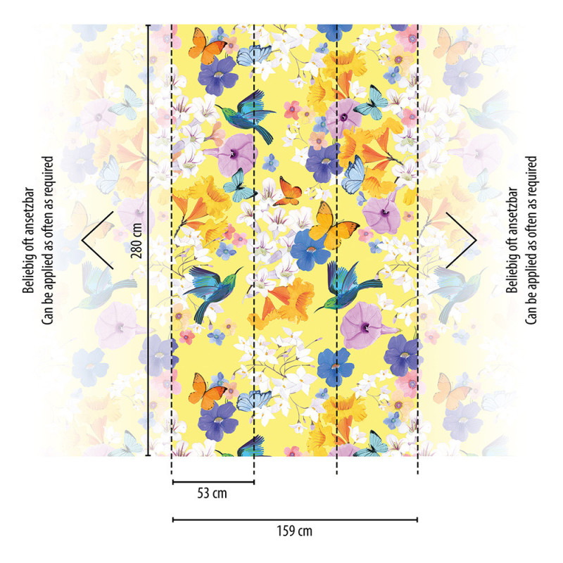 - Dimensions : 159 x 280 cm sur 3 lés, parfait pour un mur panoramique