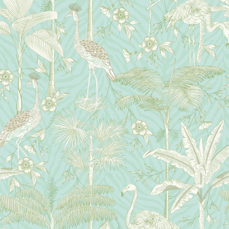 Apportez élégance et sérénité à vos murs avec ce papier peint panoramique pas cher Les Gravures Echassiers de AS Creation. Son motif raffiné met en scène de grands échassiers blancs et beiges évoluant sur un fond nuancé bleu et vert agrémenté de végétaux graphiques, pour un rendu à la fois contemporain et poétique.