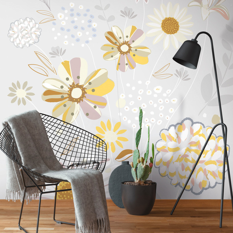 Apportez fraîcheur et élégance à vos murs avec ce papier peint panoramique pas cher Les Greys Flowers de AS Creation. De grandes fleurs multicolores s’épanouissent sur un fond gris subtil, créant une atmosphère poétique et lumineuse dans votre intérieur.