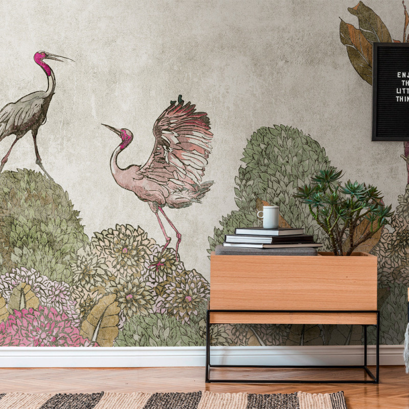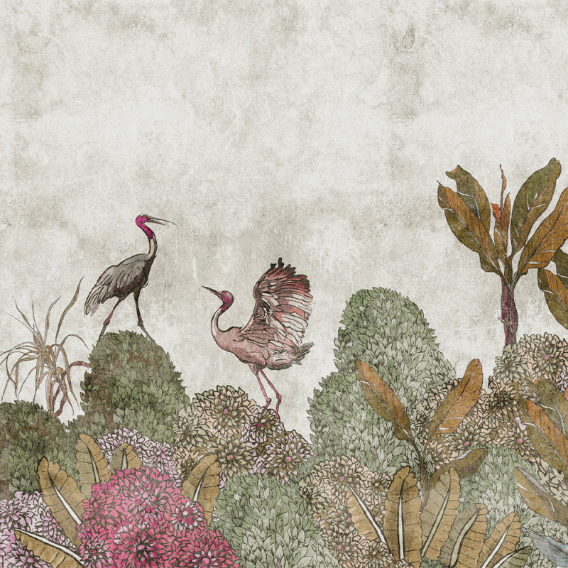 Papier peint panoramique intissé jardin d'oiseau beige végétal 371 x 280 cm AS CREATION