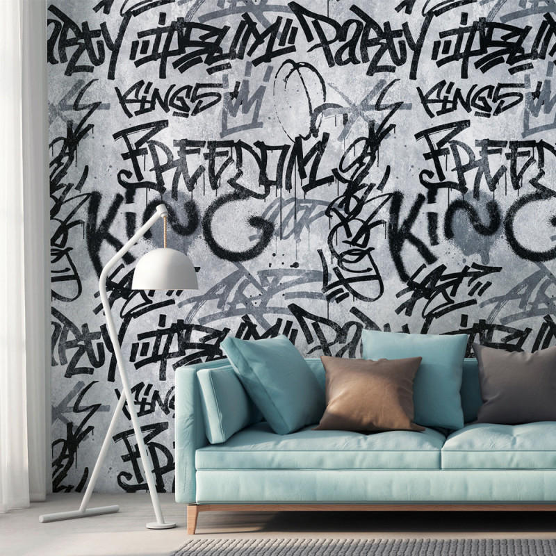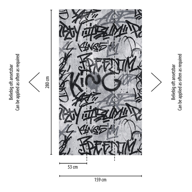 Papier peint panoramique intissé Graffiti gris 159 x 280 cm – AS Creation