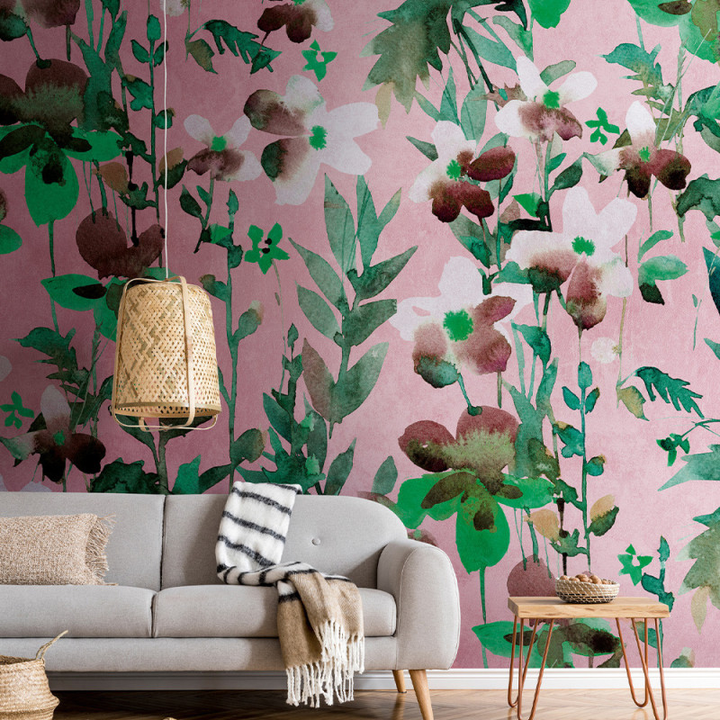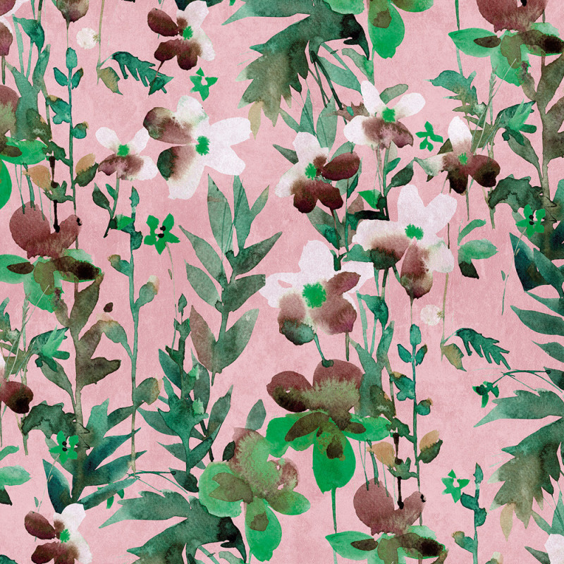 Papier peint panoramique intissé floral et végétal rose 371 x 280 cm AS CREATION
