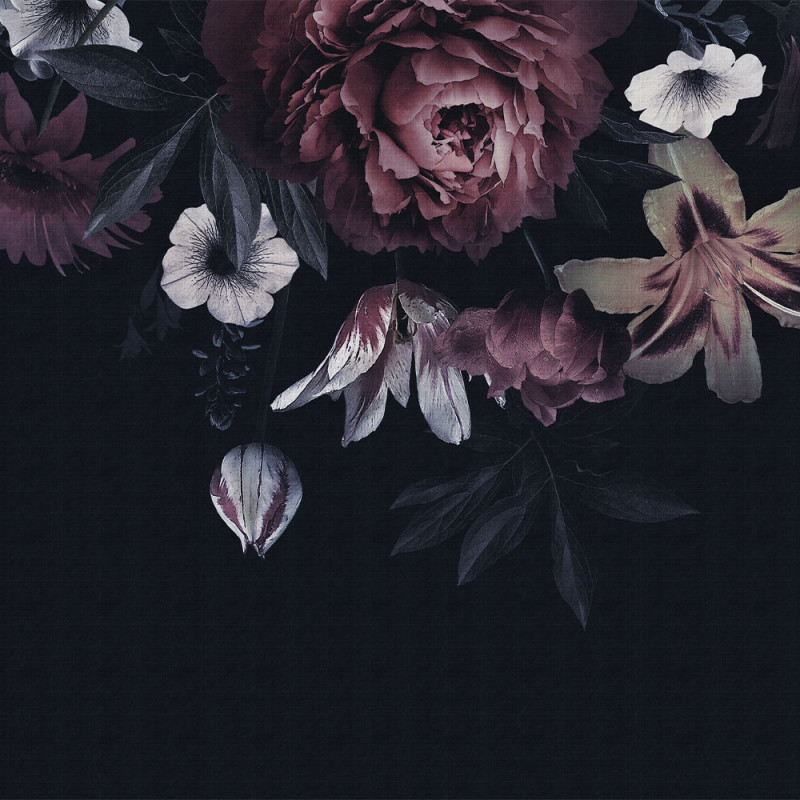 Papier peint panoramique intissé Floral sur fond noir 371 x 280 cm – AS Creation