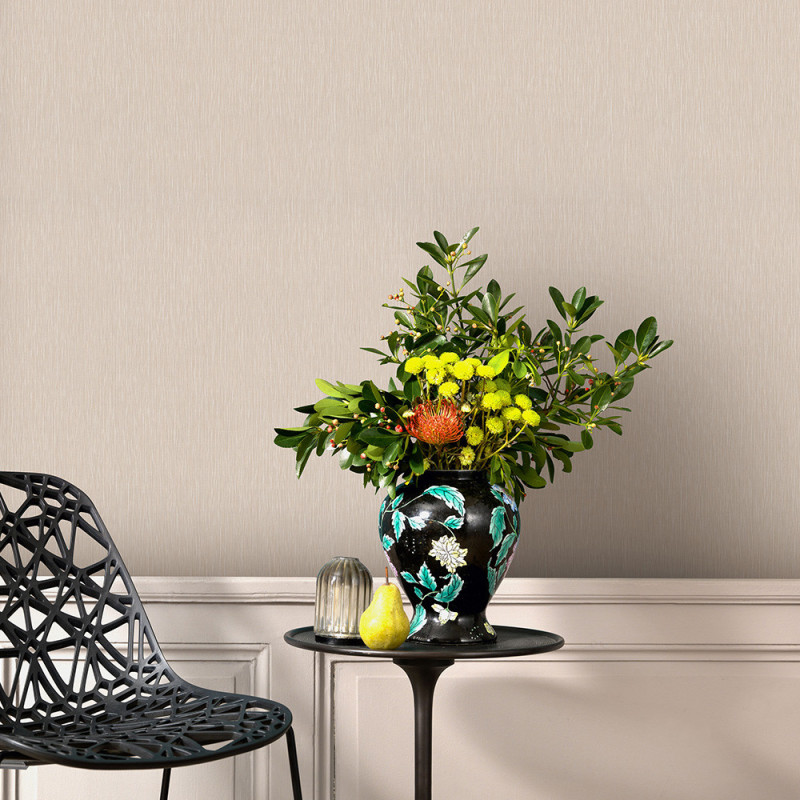 Ce papier peint intissé beige taupe apporte une ambiance chaleureuse et élégante à votre intérieur. Sa teinte naturelle s’intègre facilement dans toutes les pièces, du salon à la chambre.