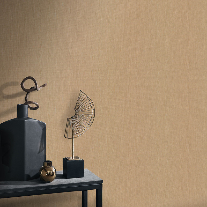 Ce papier peint intissé or apporte luminosité et élégance à vos murs. Sa finition subtilement nacrée capte la lumière et crée une ambiance chaleureuse et raffinée.