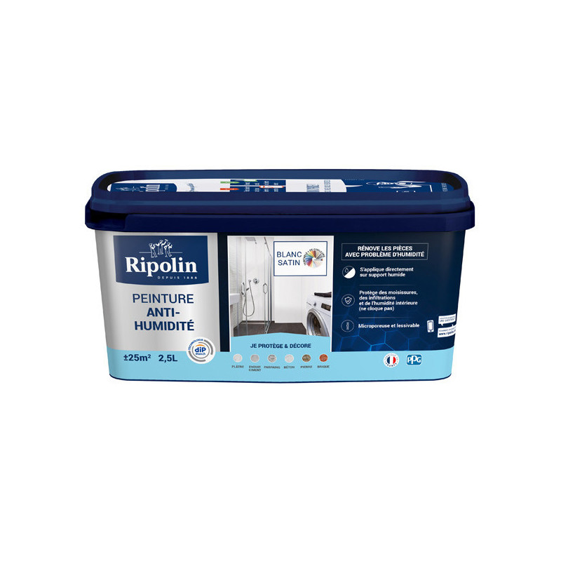 Peinture Ripolin solution anti-humidité blanc satin 2,5L